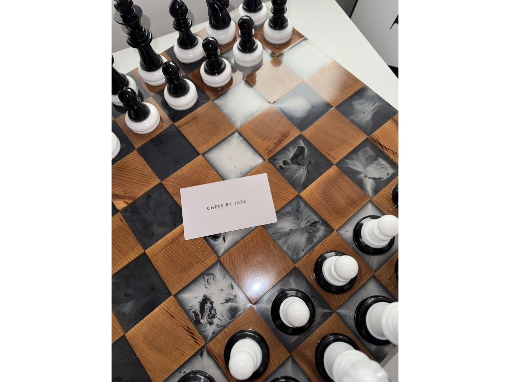 Spojení přírodní krásy jasanového dřeva s transparentním epoxidem černé a bílé barvy přináší jedinečný design, kde se setkává elegance s moderním pojetím. Každý detail je výsledkem pečlivé ruční práce, která proměňuje šachovou soupravu v originální umělecký kousek. Precizní zpracování zajistí nejen výjimečný estetický zážitek, ale i pocit luxusu a harmonie při každé partii.
