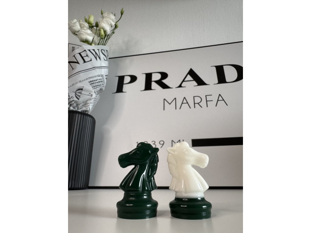Ručně vyráběná šachová souprava z epoxidové pryskyřice inspirovaná tradičním designem ve spojení bílé a smaragdově zelené barvy. Nadčasová elegance s originální barevností, která ozdobí každý interiér.